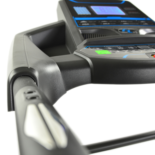 - Эргономичная консоль с 5-оконным LCD-дисплеем и голубой подсветкой отображает ключевые параметры: скорость, дистанцию, время, калории и пульс.