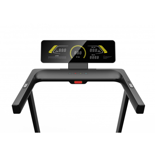 Беговая дорожка оснащена LED-дисплеем, который отображает время, дистанцию, скорость, калории и пульс. Доступны 36 встроенных программ, а также 3 индивидуальные, ручной режим и жироанализатор для контроля показателей тела.