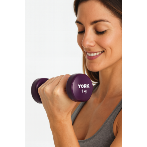 | Особенности. | Гантели York имеют гладкое, приятное на ощупь виниловое покрытие, которое: Обеспечивает противоскользящий хват - безопасные тренировки даже при интенсивных нагрузках; Защищает от царапин пол и другие снаряды; Не боится влаги, подходит для влажных помещений и улицы. |