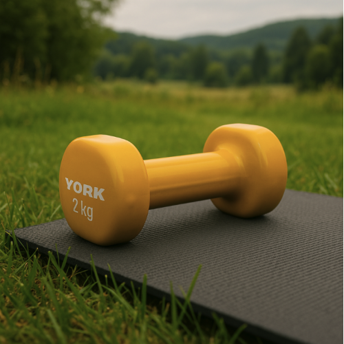 | Особенности. | Гантели York имеют гладкое, приятное на ощупь виниловое покрытие, которое: Обеспечивает противоскользящий хват - безопасные тренировки даже при интенсивных нагрузках; Защищает от царапин пол и другие снаряды; Не боится влаги, подходит для влажных помещений и улицы. |