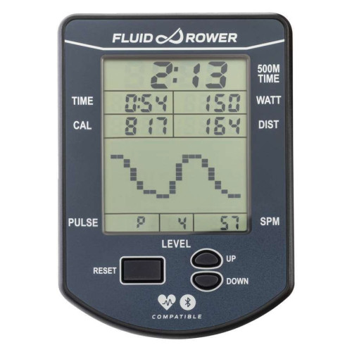 Bluetooth монитор: Отображает все параметры тренировки, такие как время, калории, дистанция и количество гребков за минуту. Вы можете подключить тренажер к программам, таким как Fluid Connect, Regatta, Asensei, EXR, Kinomap.