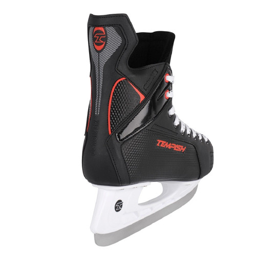 | Особенности. | Ботинок имеет верхний слой из усиленного резистивного ПВХ (ice grade DF) материала, он придает жесткость и обеспечивает высокую степень защиты ноги, а также сохраняет эластичность до -25°C. Устройство ботинка имеет незначительный наклон в области голени – это делает его удобным для повседневного катания и любительской игры в хоккей. Фиксация стопы снабжается мягким анатомическим бандажем с эффектом памяти на основе технологии DB 320. |