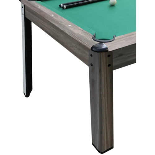 | Особенности. | Универсальность: возможность заказать дополнительную столешницу из МДФ для превращения бильярдного стола в обеденный. Идеальный выбор для функционального использования. Игровая поверхность премиум-качества: холст Teclon классического зеленого цвета обеспечивает хорошее скольжение шаров. Толщина основания 18 мм гарантирует устойчивость и долговечность. Профессиональная система траекторий: деревянные борта с маркерами-ромбами позволяют контролировать траектории ударов. Американские стандарты проемов и резиновые борта с треугольным профилем обеспечивают идеальную игру. |