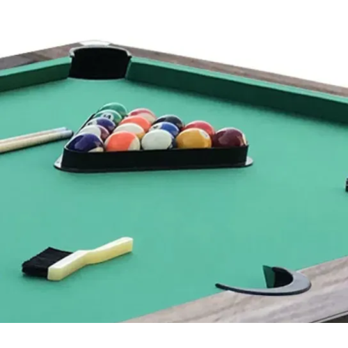 | Комплектация | Шары для пула (16 шт.), диаметр 57 мм. Две кии из дерева длиной 145 см. Треугольник для шаров. Два мела. Щетка для ухода за холстом. |