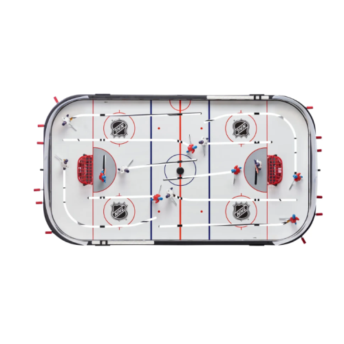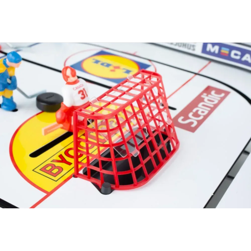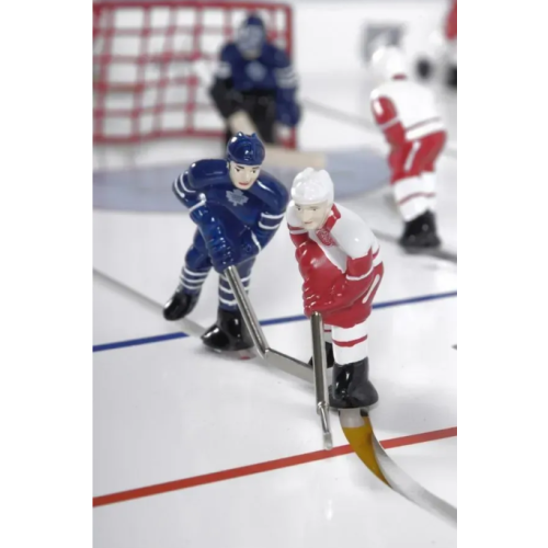 | Особенности. | Фигурки хоккеистов могут быть заменены любой из 30 хоккейных команд NHL® (приобретаются дополнительно). На борту представлены логотипы хоккейных команд NHL®. Поле ("лед") утолщено на 25% по сравнению с предыдущей версией игры. Все незакрепленные детали могут быть заменены, что продлевает срок службы хоккея. |
