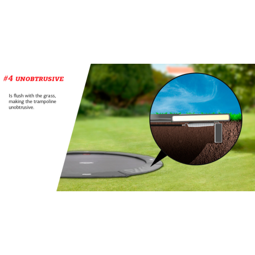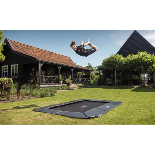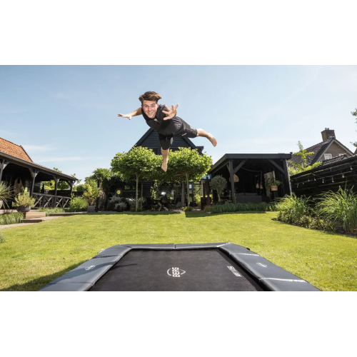 Особливості | Стрибковий мат Airflow дозволяє на 50% зменшити опір потоку повітря. Це призводить до кращого комфорту стрибка та вищого та більш гнучкого стрибка! • Пружини TwinSpring Gold розташовані під кутом, вони дуже довгі та гнучкі, не зменшують поверхню для стрибків. • Додаткова безпека завдяки товстому захисному краю із ПВХ товщиною 35 мм. • Запатентована рама проста у складанні та установці. • Унікальна стабілізація захисного краю запобігає його деренченню. • Батут чудово вписується в дизайн саду. |