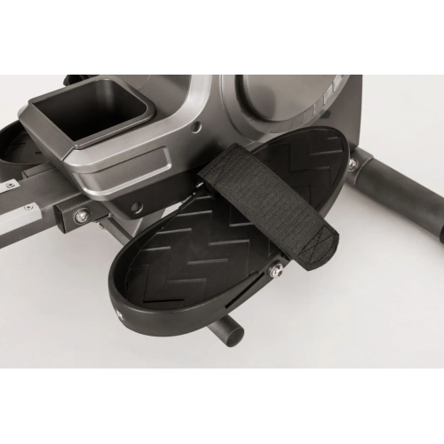 Модель оснащена роликовим сидінням на алюмінієвій напрямній, що забезпечує плавний хід, та ергономічними педалями з ремінцями, які надійно фіксують стопу під час інтенсивних вправ. Збалансований маховик масою 5 кг гарантує рівномірний рух, мінімізуючи навантаження на суглоби і забезпечуючи комфорт навіть під час тривалих тренувань.